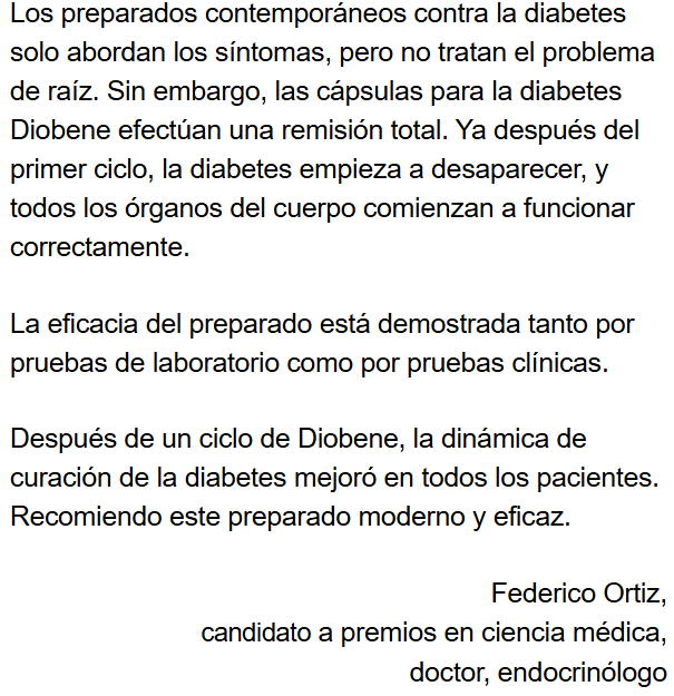 Gracias a los ingredientes naturales, Diobene estimula la síntesis de insulina y de las células beta del páncreas. Los productores han recibido todos los certificados y autorizaciones de calidad válidos en toda Europa y no solo.
